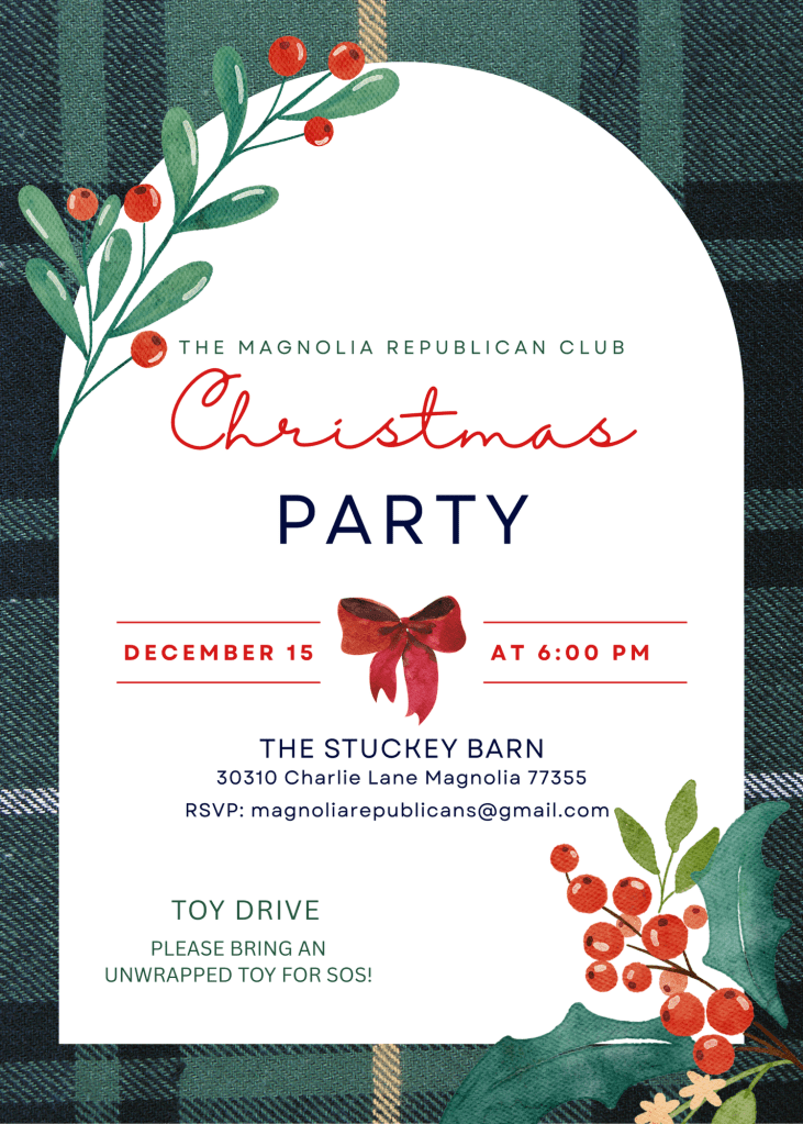 The Magnolia Republican Club is made up of Republicans who are passionate about our Magnolia Community and KEEPING IT RED! If you are a Republican, you are our friend and we’d love to meet you! Subscribe to our newsletter, and join on us on Facebook, to keep up with all of our events.
